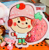 Childlike Shortcake glitter sticker. measures roughly 3" tall. beautiful red glitter in the strawberry with light pink border