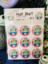 You get 15 1.5" stickers is this pack and they have a mint chocolate chip scent.